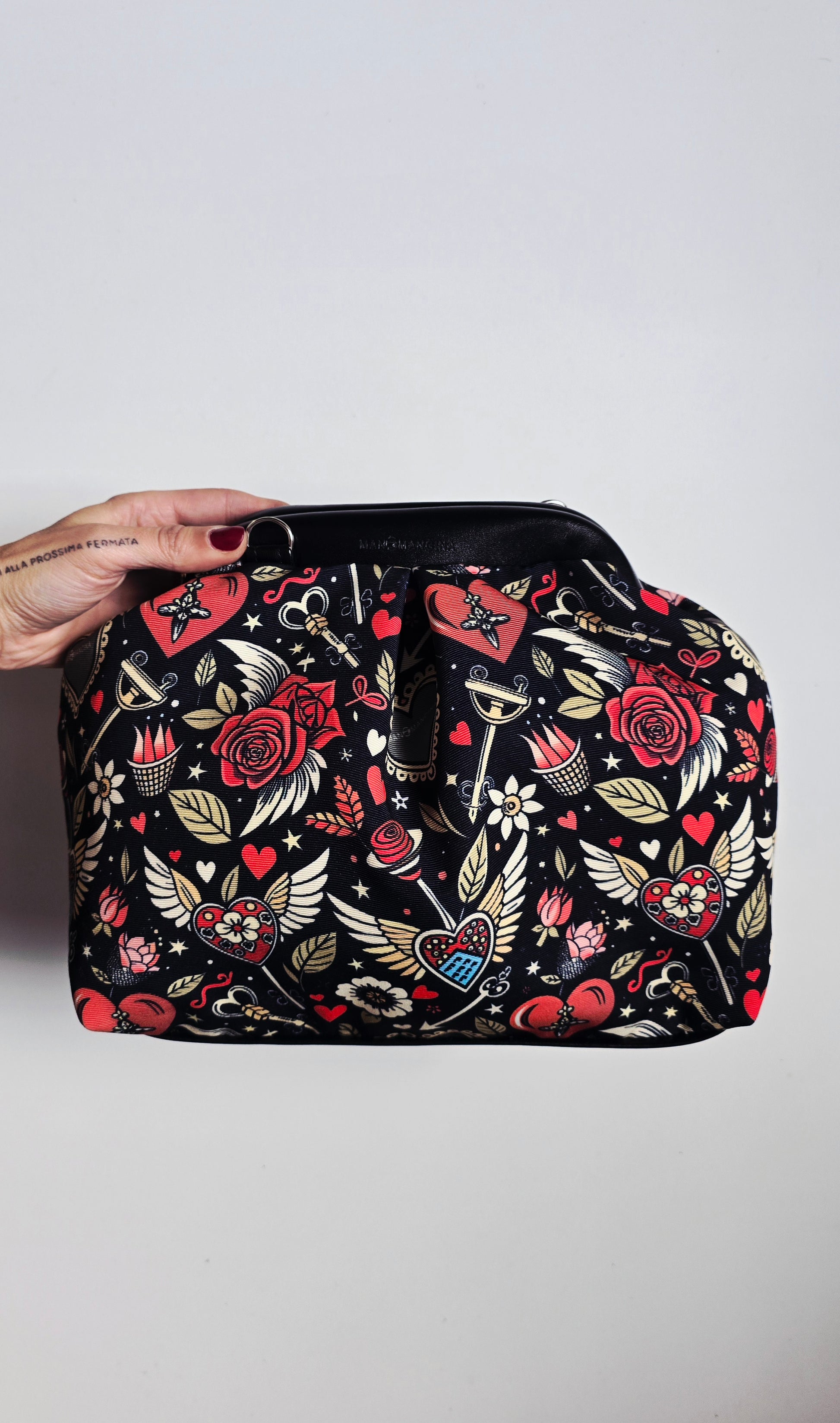 BORSA CLIC CLAC tracolla regolabile nero/tattoo love