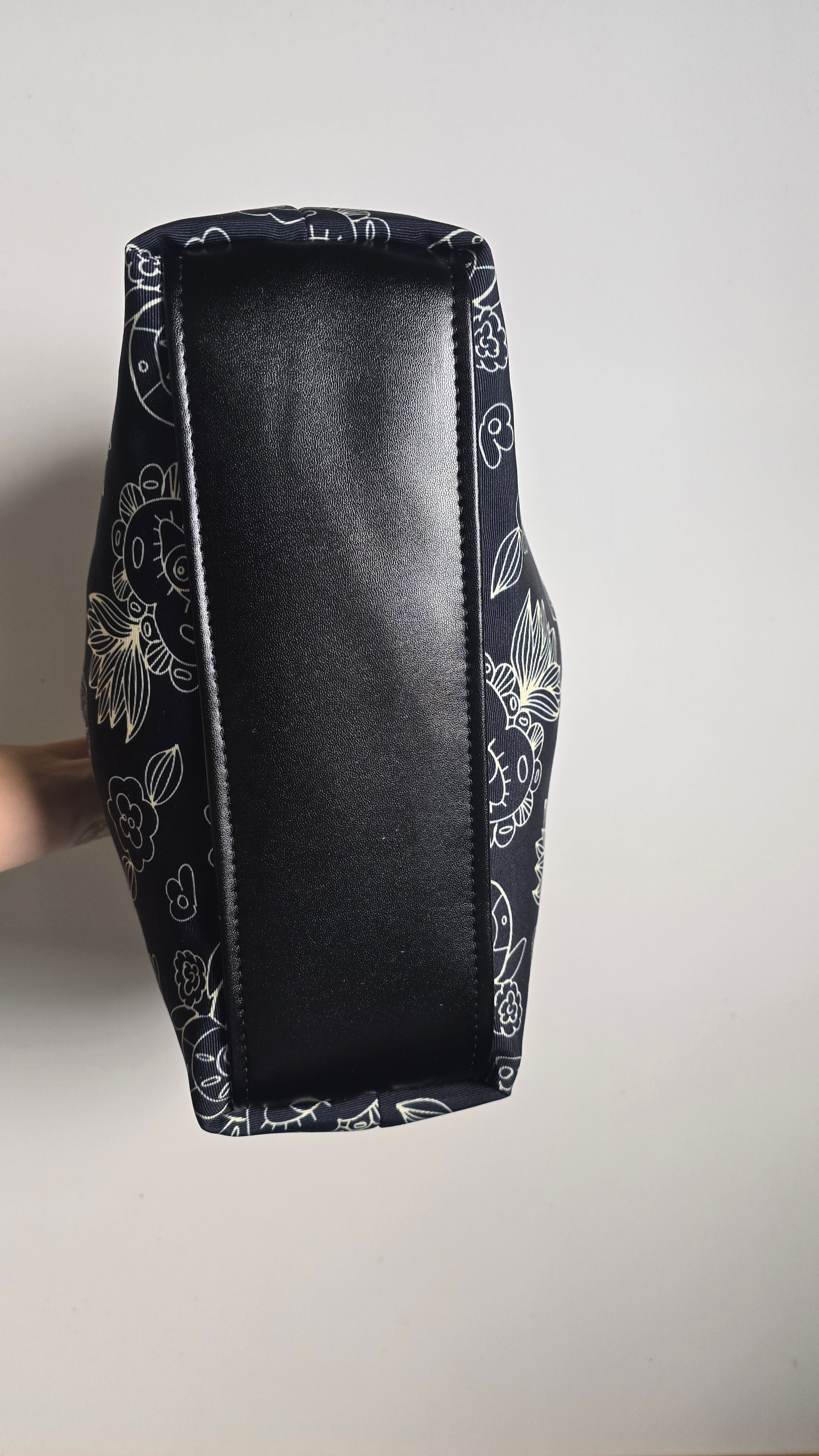 Borsetta con chiusura a scatto, in similpelle e tessuto, imbottita, fondo semi rigido in similpelle,