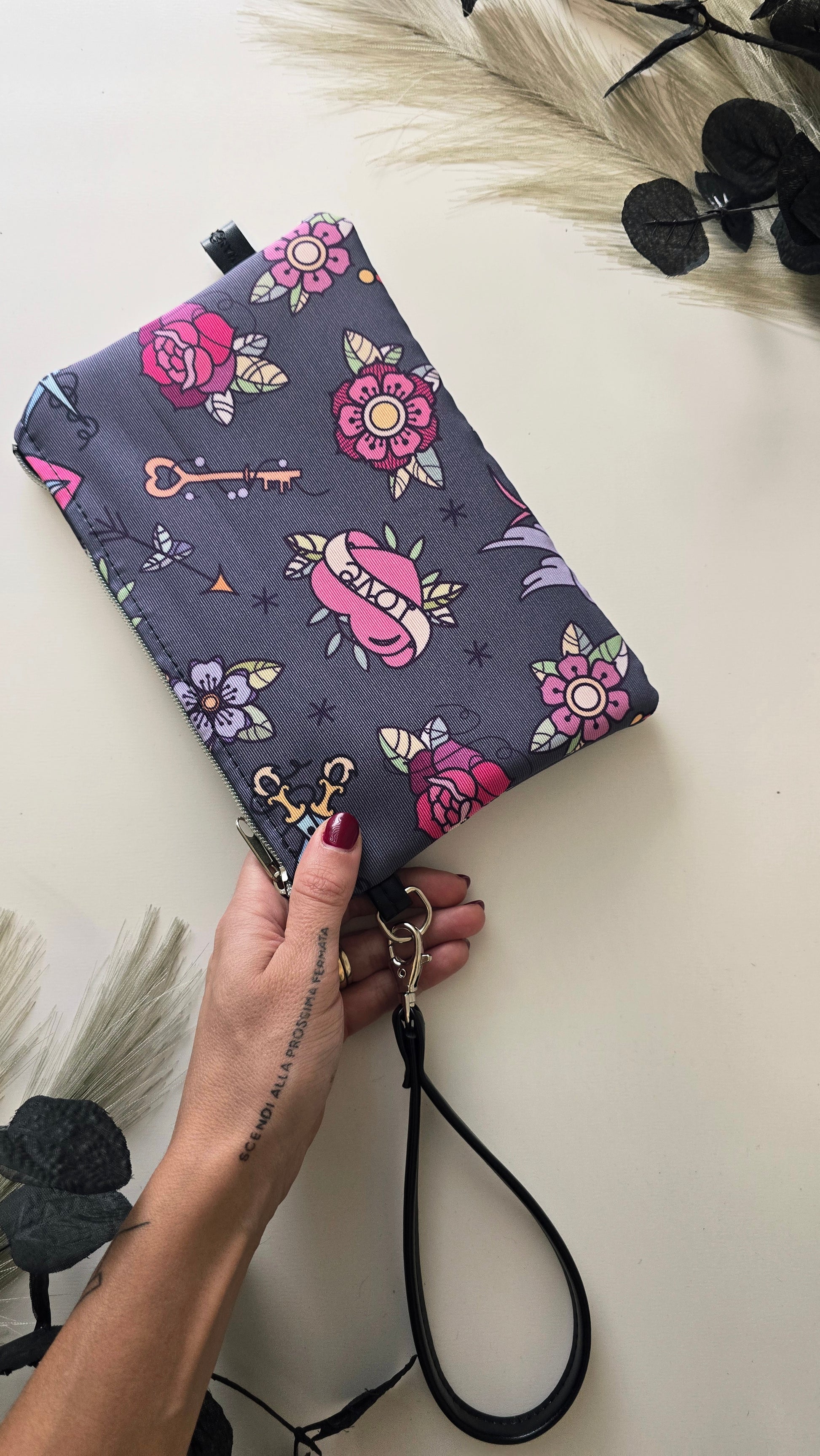 Misure 15×25cm chiusura con cerniera e pratico laccetto in similpelle removibile