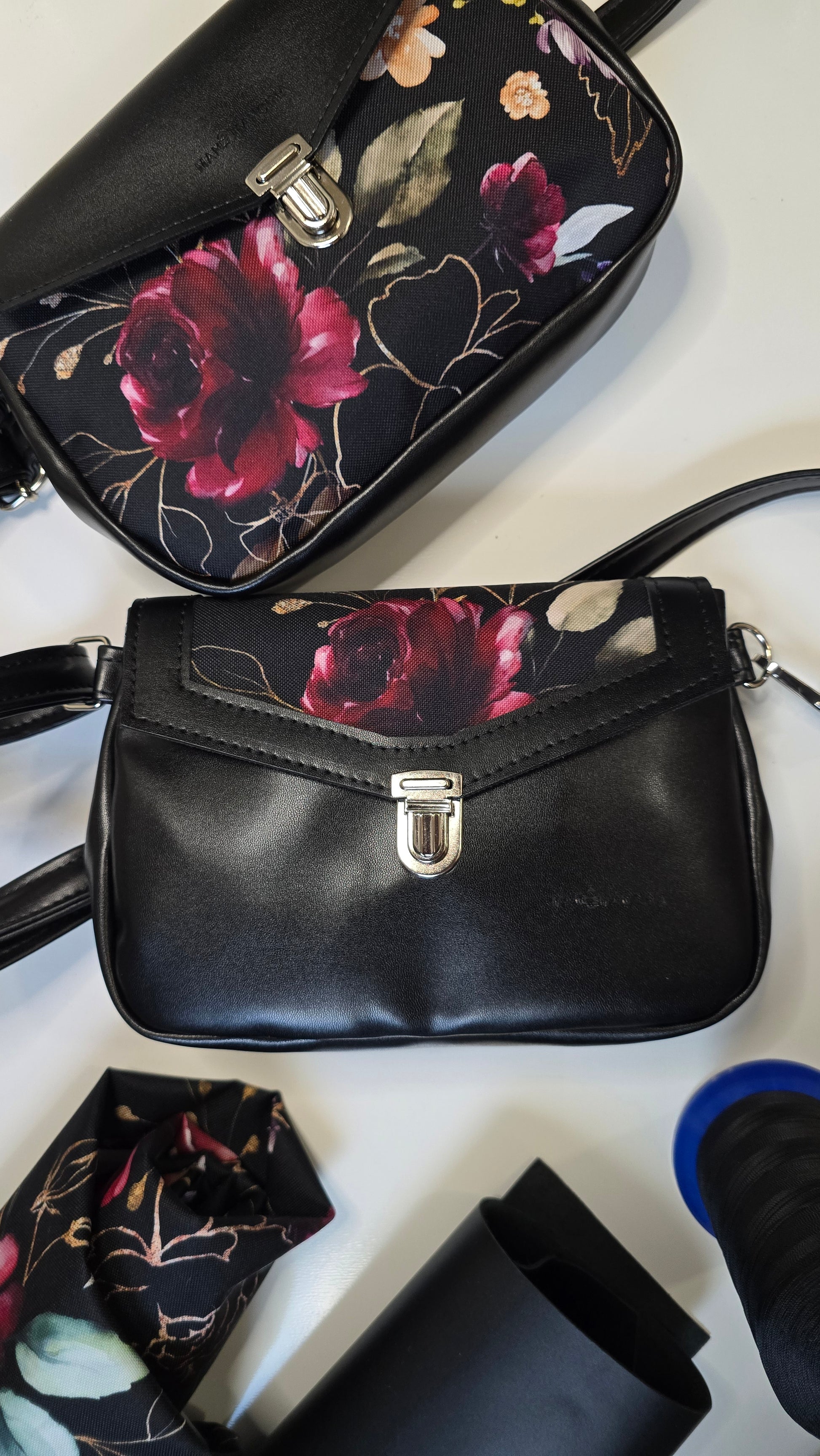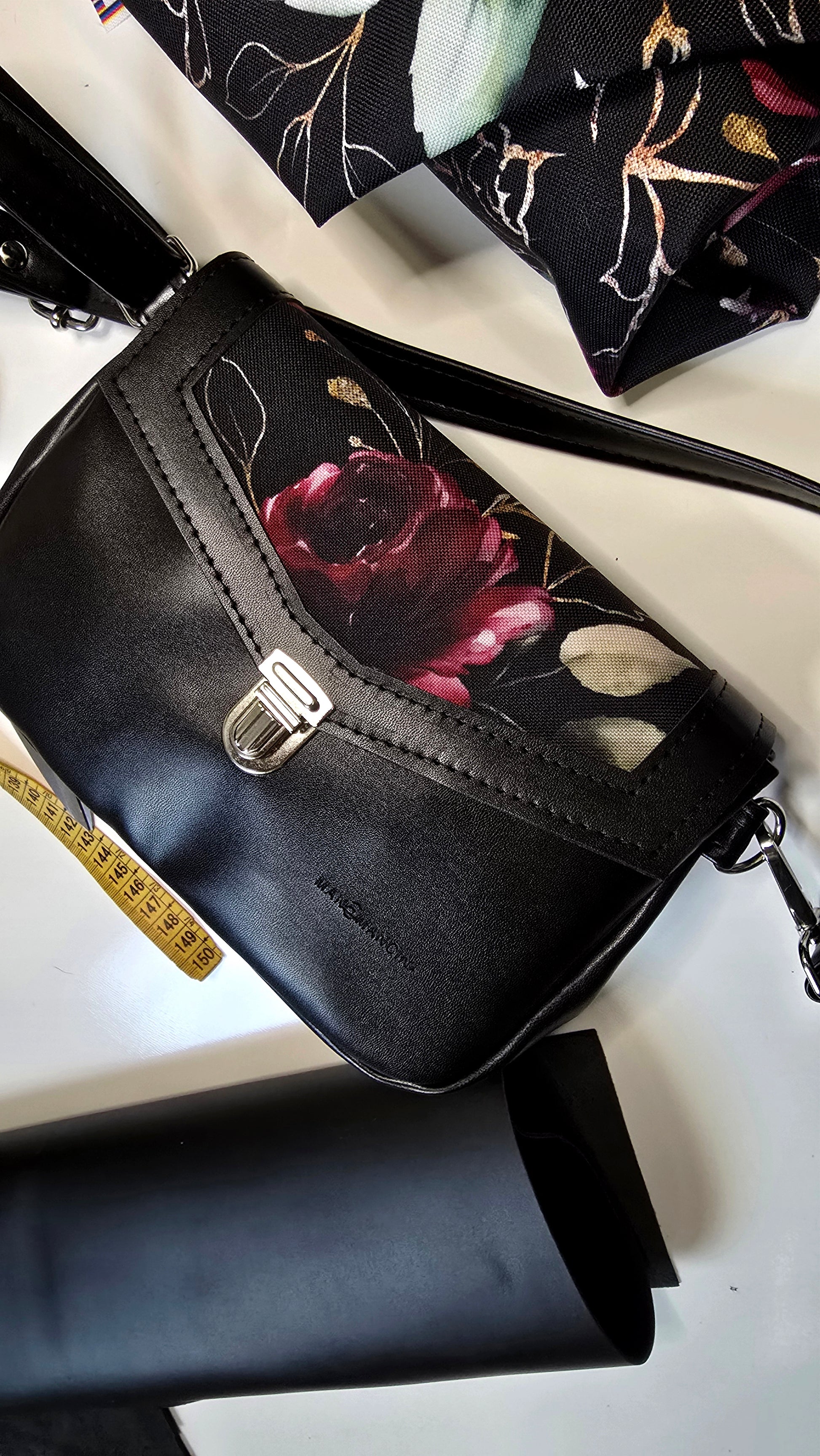 Similpelle e tessuto, tracolla regolabile