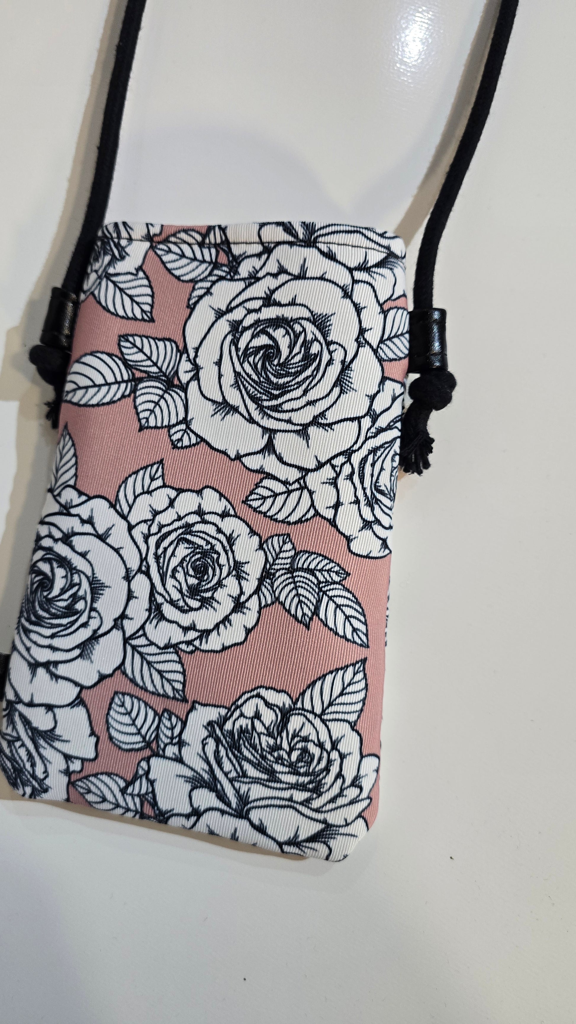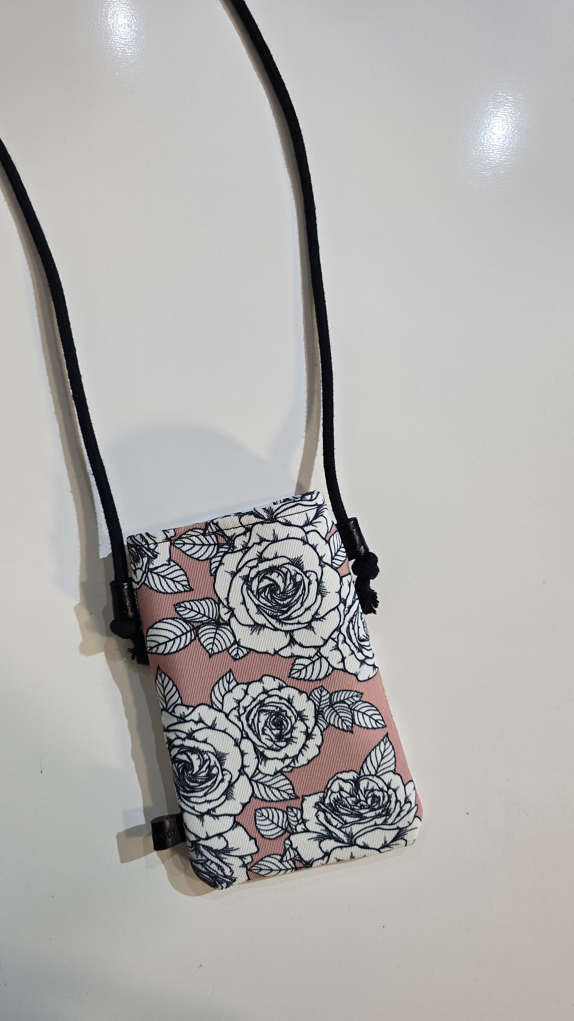 Borsetta porta cellulare misura 13x19cm interno similpelle esterno tessuto fantasia, tracolla Cordino nero 1 cm