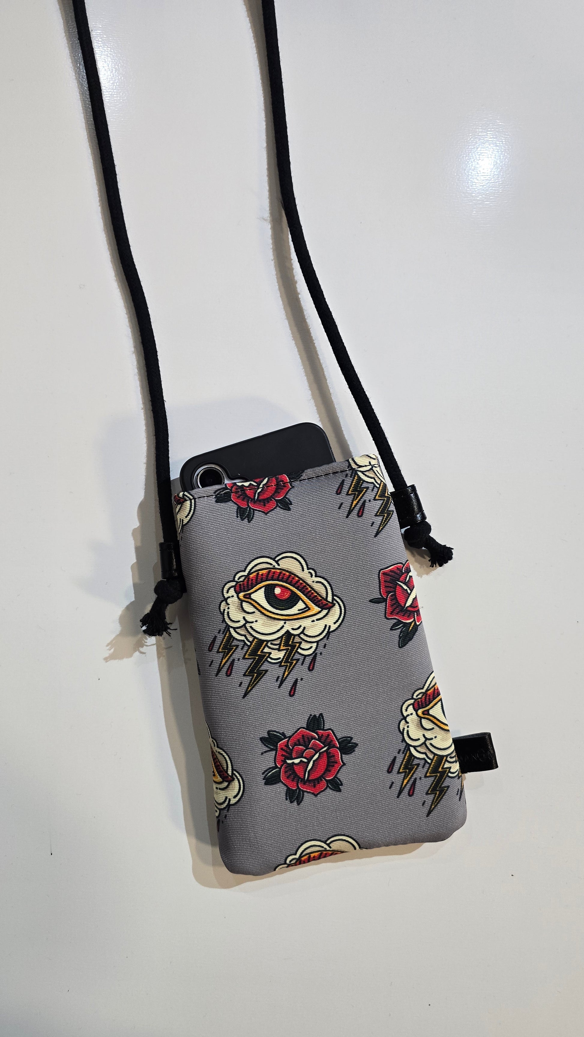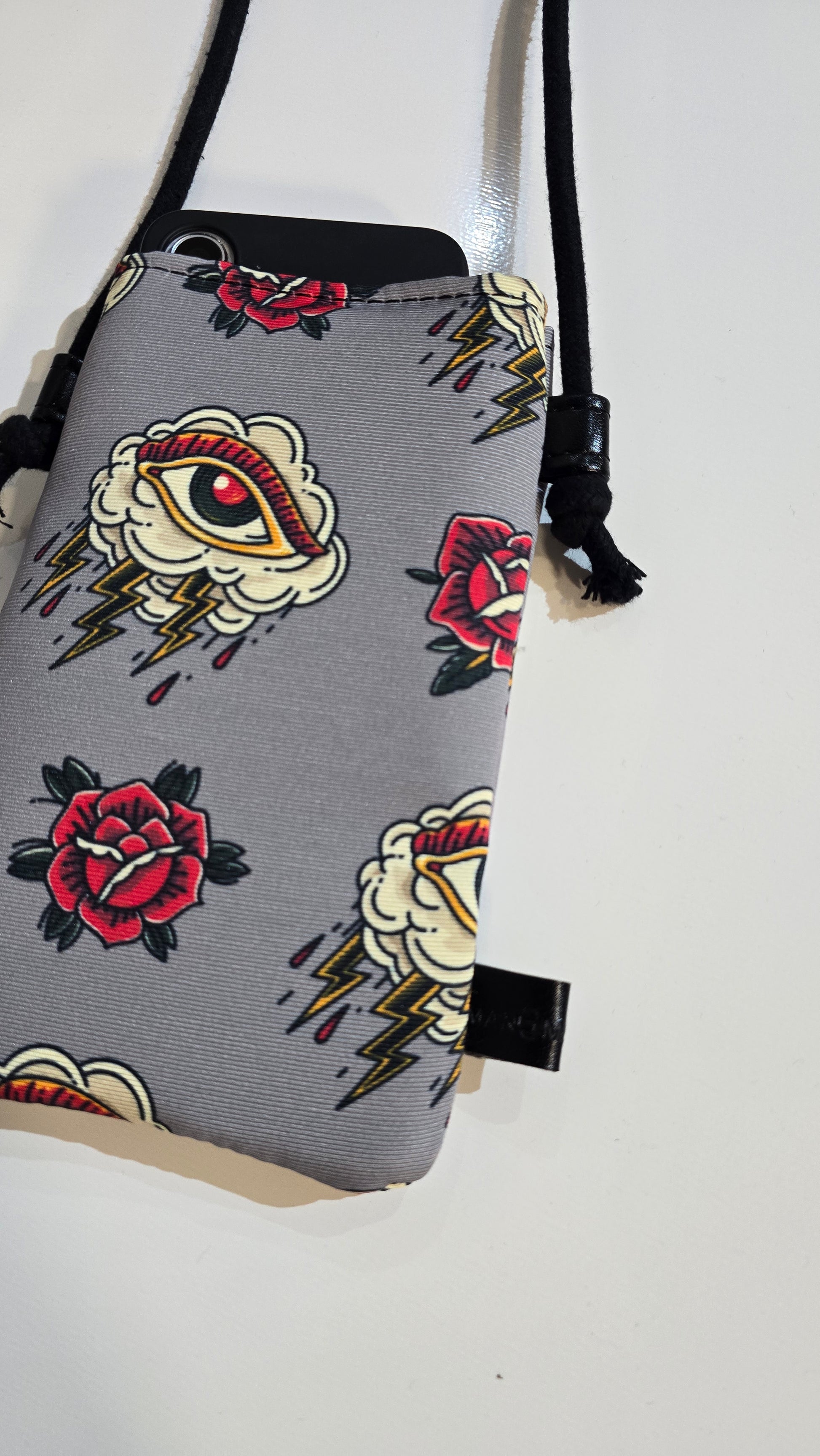 Borsetta porta cellulare misura 13x19cm interno similpelle esterno tessuto fantasia, tracolla Cordino nero 1 cm
